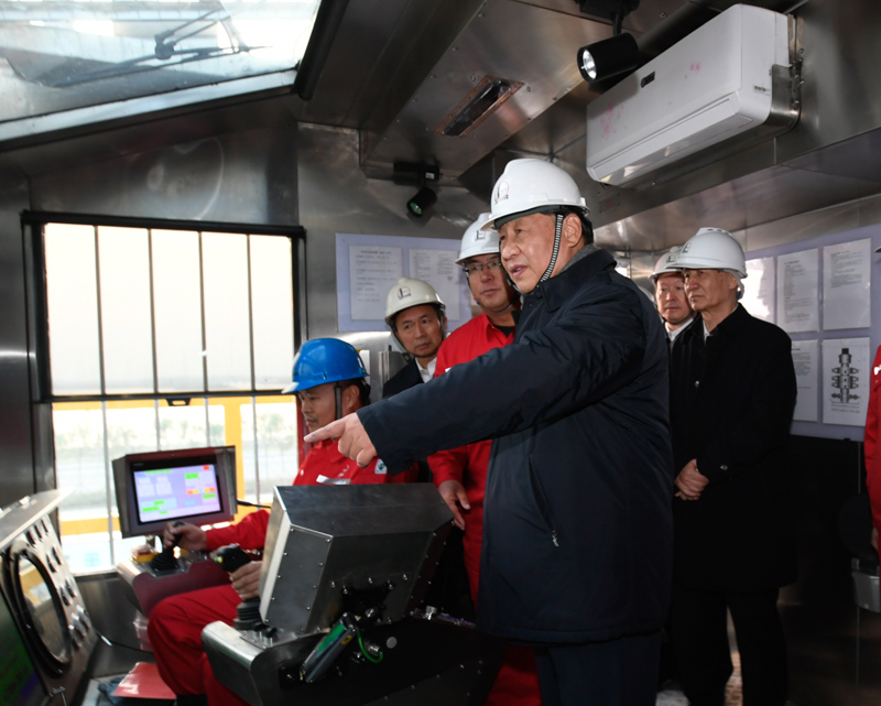 離開研究院,習(xí)近平來到位于東營市萊州灣的勝利油田萊113區(qū)塊,了解二氧化碳捕集、利用與封存技術(shù)研發(fā)應(yīng)用情況。他登上二層鉆井平臺,察看鉆井自動化設(shè)備,走進(jìn)操作室,同正在作業(yè)的工人親切交流。今年是勝利油田發(fā)現(xiàn)60周年。習(xí)近平代表黨中央向為我國能源事業(yè)作出貢獻(xiàn)的石油工作者們表示崇高敬意。習(xí)近平叮囑大家繼承和發(fā)揚(yáng)老一輩石油人的革命精神和優(yōu)良傳統(tǒng),始終保持石油人的紅色底蘊(yùn)和戰(zhàn)斗情懷,為社會主義現(xiàn)代化建設(shè)事業(yè)作出更大貢獻(xiàn)。