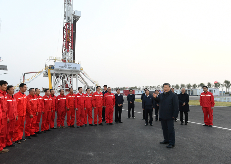 21日下午,習(xí)近平來到勝利油田勘探開發(fā)研究院,了解油田開發(fā)建設(shè)歷程和研究院總體情況,走進(jìn)頁巖油實驗室、二氧化碳?xì)怛?qū)實驗室,聽取油田堅持自主創(chuàng)新、加快技術(shù)攻關(guān)應(yīng)用、保障國家能源安全等情況介紹。習(xí)近平強(qiáng)調(diào),解決油氣核心需求是我們面臨的重要任務(wù)。要加大勘探開發(fā)力度,夯實國內(nèi)產(chǎn)量基礎(chǔ),提高自我保障能力。要集中資源攻克關(guān)鍵核心技術(shù),加快清潔高效開發(fā)利用,提升能源供給質(zhì)量、利用效率和減碳水平。他指出,石油戰(zhàn)線始終是共和國改革發(fā)展的一面旗幟,要繼續(xù)舉好這面旗幟,在確保國家能源安全、保障經(jīng)濟(jì)社會發(fā)展上再立新功、再創(chuàng)佳績。