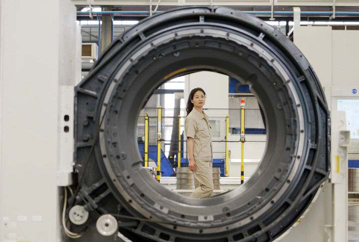 2025年5月24日,洛陽軸承集團(tuán)技術(shù)中心高端軸承項目研發(fā)團(tuán)隊成員喬淑香查看自己參與設(shè)計的醫(yī)療CT機(jī)軸承。新華社記者 李嘉南 攝